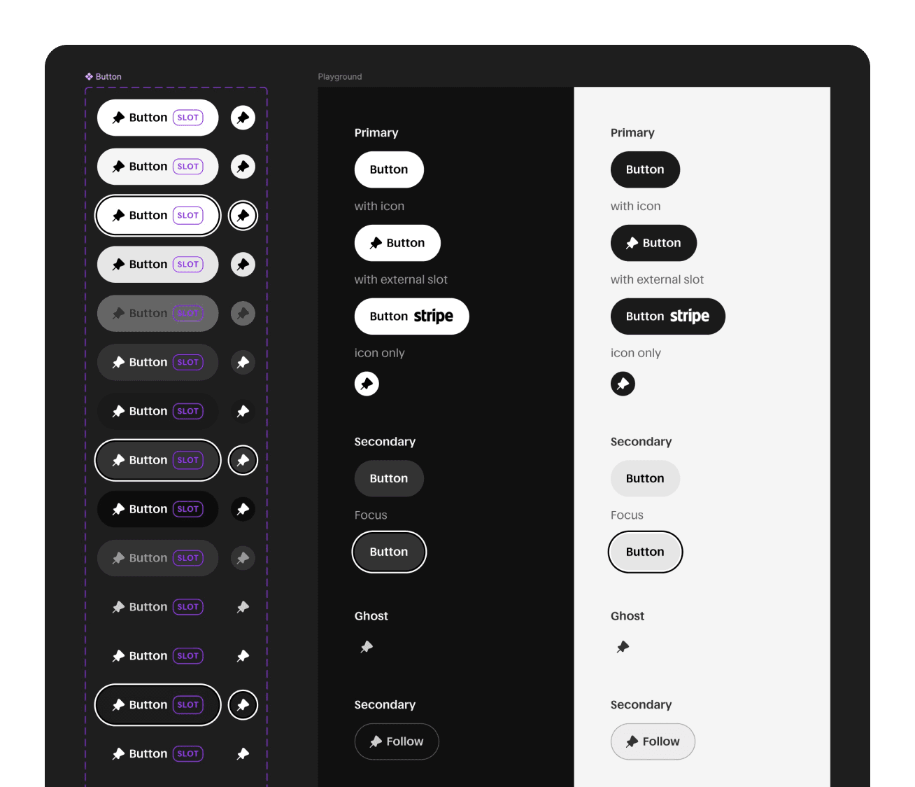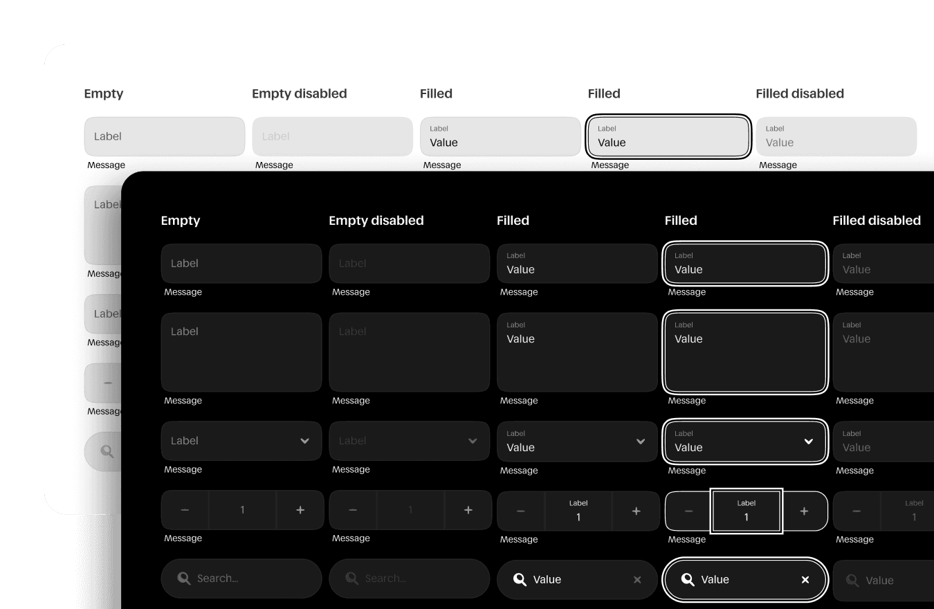 In collaboration with the design lead, I designed two complete design systems from the ground up: one for web and one for mobile. Both systems are built around tokens and modes, providing a solid, shared foundation for the team.